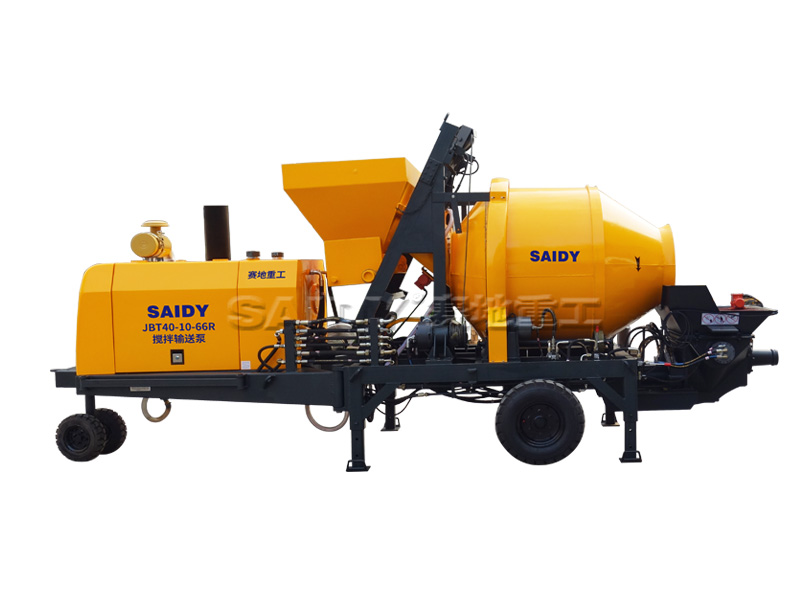 攪拌泵送一體機集攪拌機和泵送機為一體,又稱攪拌拖泵、攪拌輸送一體泵、攪拌泵一體機、攪拌輸送兩用機、混凝土攪拌機帶泵車一體機等。賽地JBT系列攪拌泵送一體機選用JZC滾筒式攪拌機作為攪拌主體部分,結合HBT系列混凝土泵,集上料、混合攪拌、高壓泵送為一體。可用柴油機或電動機作為動力系統,其中柴油機動力攪拌泵送一體機采用可旋轉式設計。施工操作系統全部自動化,攪拌泵送上料加水等實現了一鍵操作,能在施工現場便捷移動,可卸料混凝土罐車,或到自卸卡車適應更多環境。